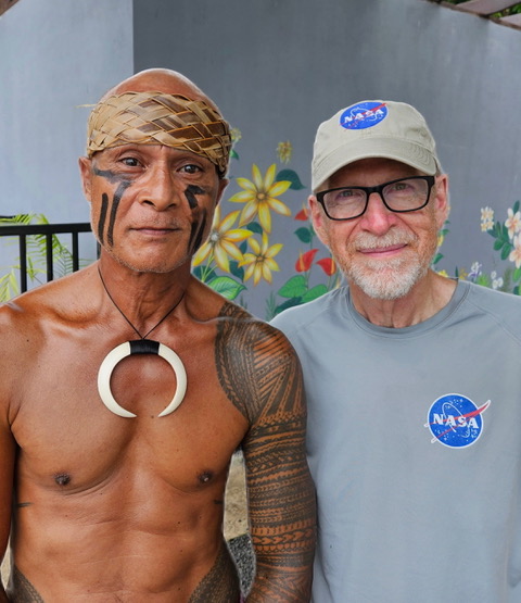 Chris Solomona, our wonderful Samoan tour guide, was happy to see my NASA logo hat and shirt — and he asked ME to take this photo with him!